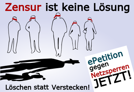 Es gibt neue Banner für die Zensursula – ePetition und noch immer ist Zeit, selbst kreativ zu werden und eigene Vorschläge einzuschicken.