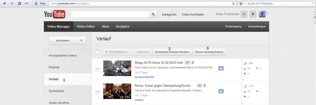 Die etwas kompliziertere Anleitung zum Entfernen der Daten aus YouTube haben wir für Nutzer der deutschen Sprachversion hier nachgebaut: