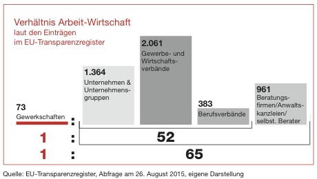Die Arbeiterkammer (AK) ist die gesetzliche Interessensvertretung aller unselbstständig in Österreich Beschäftigten (ähnliche Einrichtungen gibt es in Deutschland nur in Bremen und im Saarland). In einer aktuellen Broschüre widmet sich die AK jetzt „Lobbying in Brüssel“ (PDF, englisches PDF) und hat dafür u.a. das EU-Transparenzregister ausgewertet.