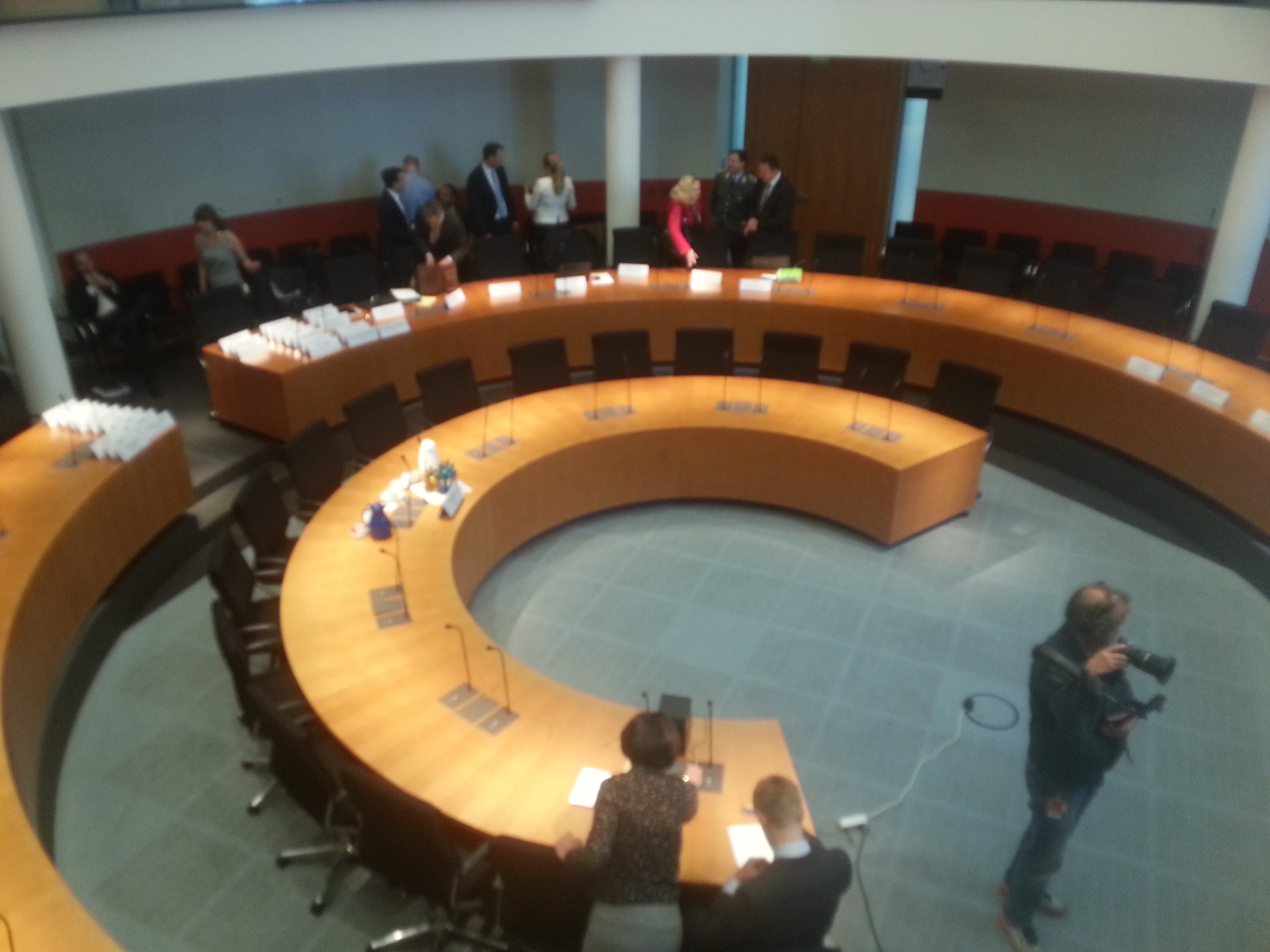 Jetzt ist erstmal eine interne Beratungssitzung zum Vorschlag des Sonderermittlers. Kaum haben wir Platz genommen, müssen wir wieder aus dem Saal raus.