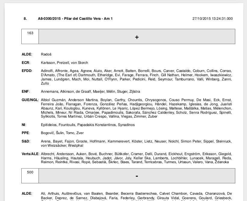 - Das Protokoll nennt – quasi als Erkennungszeichen – auch die Berichterstatterin des Parlaments, Pilar del Castillo Vera (EPP).