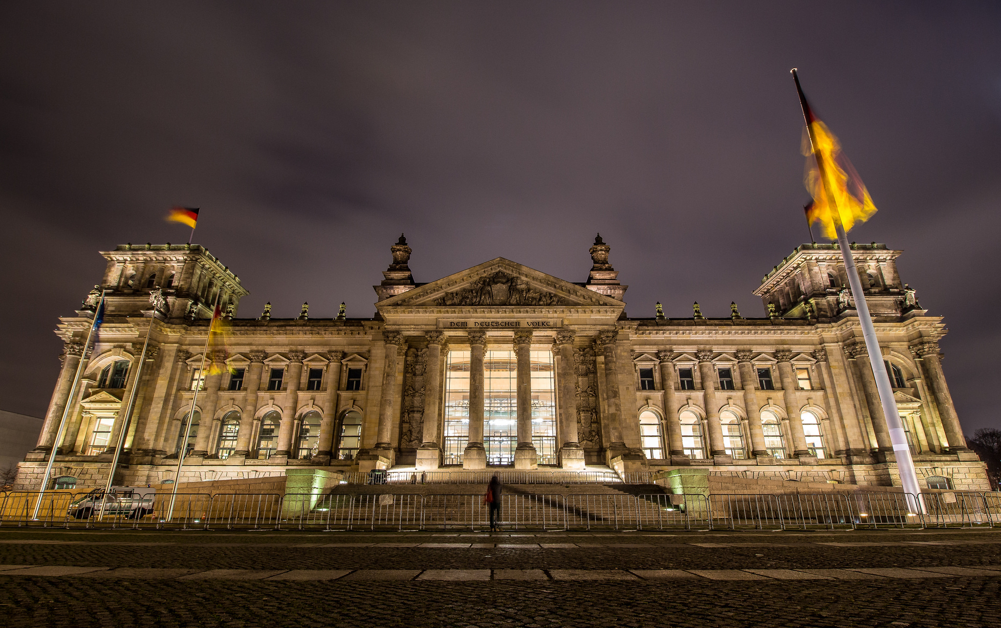 „Dem Deutschen Volke“ und es ist ein Absperrgitter davor gebaut.
