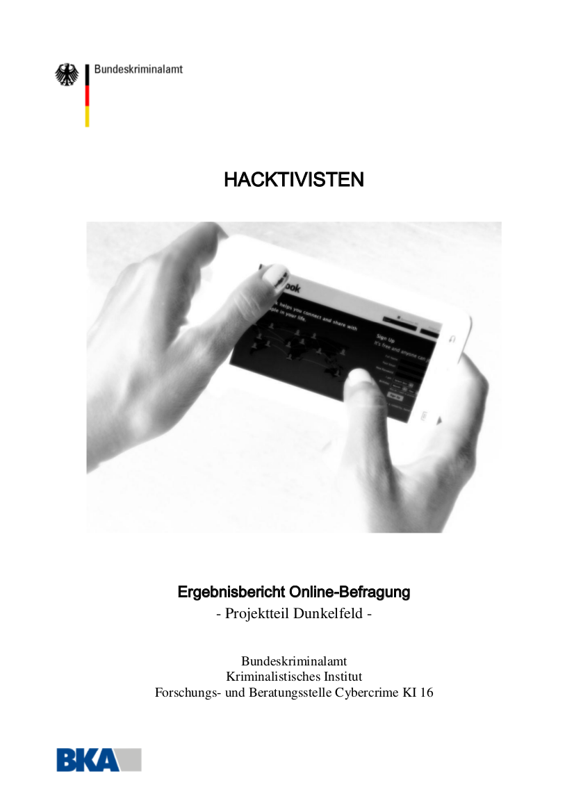 Zunächst führte das BKA eine sogenannte Hellfeld-Studie durch. Eine eher willkürliche Literaturstudie trug Veröffentlichungen aus dem deutschsprachigen und angelsächsischen Raum zusammen und versuchte eine begriffliche Abgrenzung hinsichtlich „Cyber“-Phänomenen, darunter „Cybercrime“, „Hacking“, „Cyberterrorismus“, „Cyberwar“. Vorgeschlagen werden Maßnahmen, um vor allem jugendliche ErsttäterInnen mit drakonischen Maßnahmen abzuschrecken.