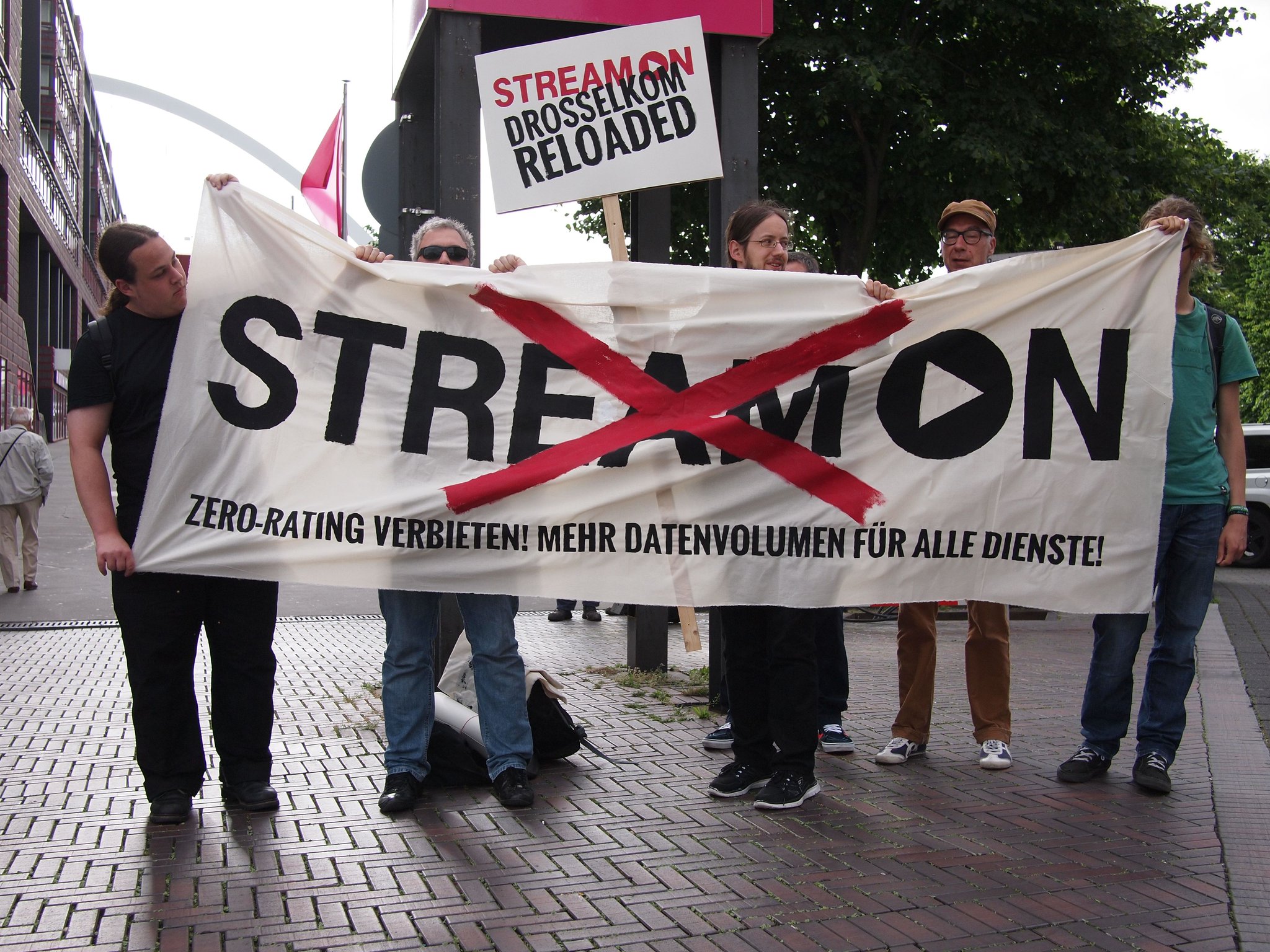 Bereits am Morgen hatte der Chaos Computer Club Köln zu einer kleinen Demonstration für die Netzneutralität vor der Hauptversammlung aufgerufen. Bilder der Aktion finden sich bei Torsten Kleinz und Markus Kompa auf Twitter.
