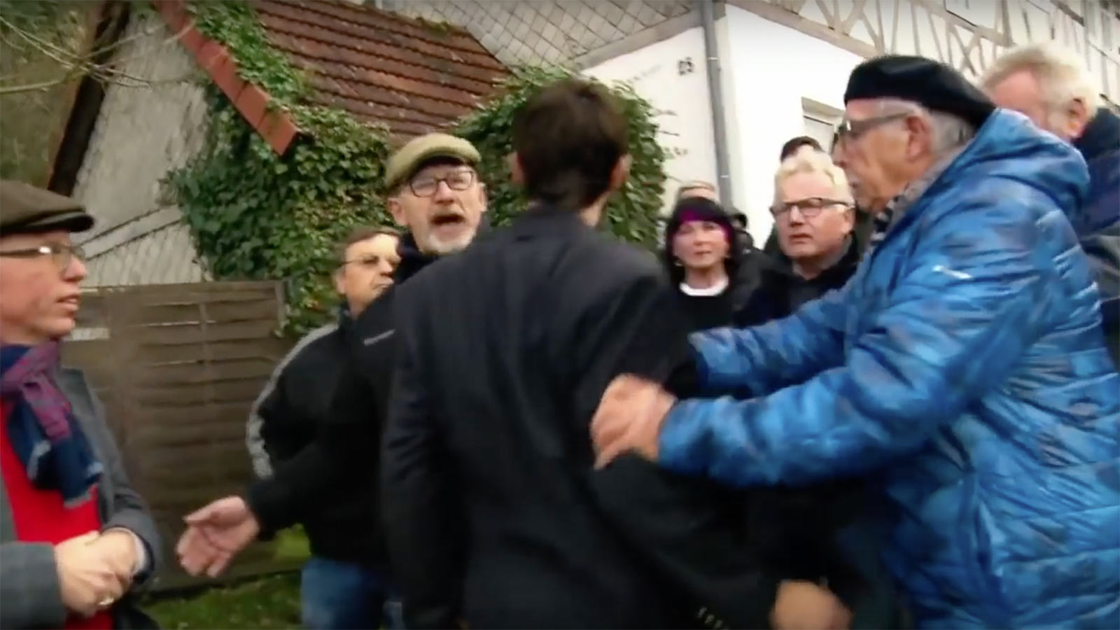 Habe ich mich verhört, oder faselt der besorgte Bürger während der Kamerademontage tatsächlich etwas von „Höcke’s Totenkopfstandarte“? Würde ja passen:
