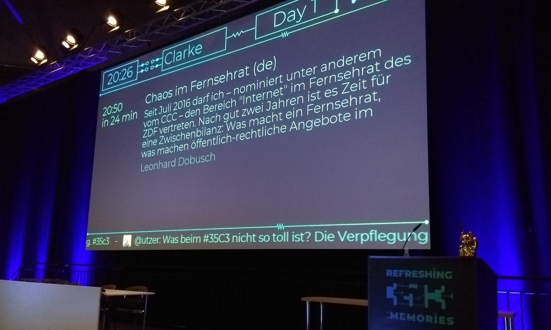 Es war mir ein Anliegen und eine Freude, beim diesjährigen Chaos Communication Congress in Leipzig über meine Tätigkeit im ZDF-Fernsehrat zu berichten. Nicht nur, weil der Chaos Computer Club (CCC) einer jener vier Vereine ist, die über meine Entsendung in den Fernsehrat mitentschieden haben.