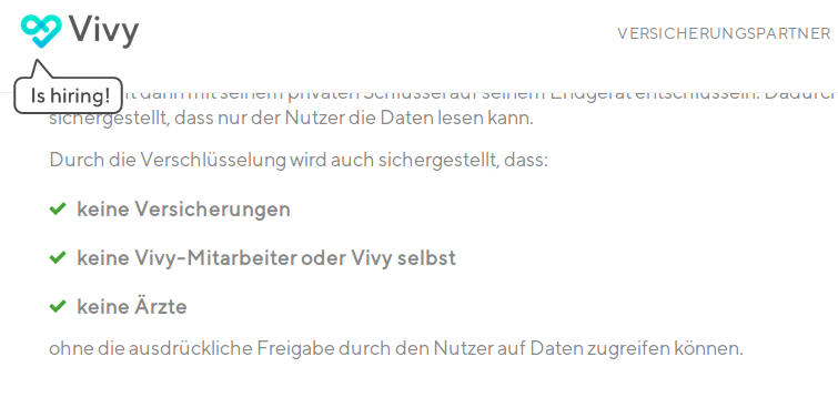 Vivy ist eine Plattform und für den Austausch von Daten geschaffen. Immer dann, wenn nicht beide Enden der Ende-zu-Ende-Verschlüsselung beim Versicherten liegen, sondern Daten beispielsweise mit einem Arzt ausgetauscht werden, bestand Gefahr.