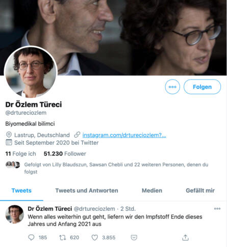 Özlem Türeci und Uğur Şahin hatten mit BioNTech viel mediale Aufmerksamkeit bekommen. Wer auch immer hinter den Accounts steckte, nutzte diese Gelegenheit aus – zu welchem Zweck lässt sich nur schwer sagen.