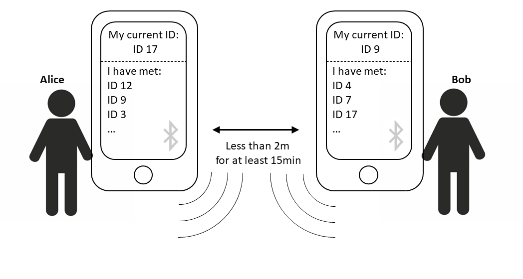 Why would such an app be useful at all? We still don’t know many things about the coronavirus. The data so far suggest that about half of all infections occur before the dreaded symptoms of fever or a persistent cough appear. It is thus not enough to quarantine people once they show symptoms. To reduce infections, one would need to act quickly when a person is diagnosed with Covid-19 to find all people this person was in close proximity with. The risk of infection is highest if one has been within 1.5 to 2 meters of an infected person for at least 10 to 15 minutes.