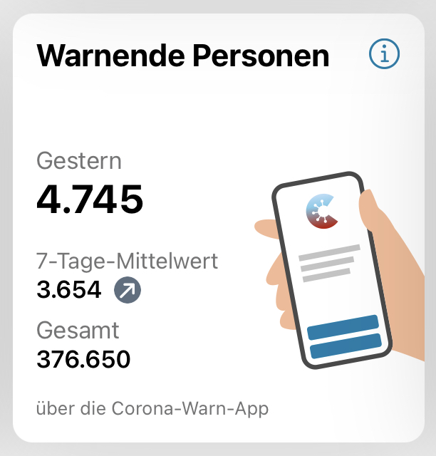 Info-Kacheln in der Corona-Warn-App, Screenshot vom 15. April 2021