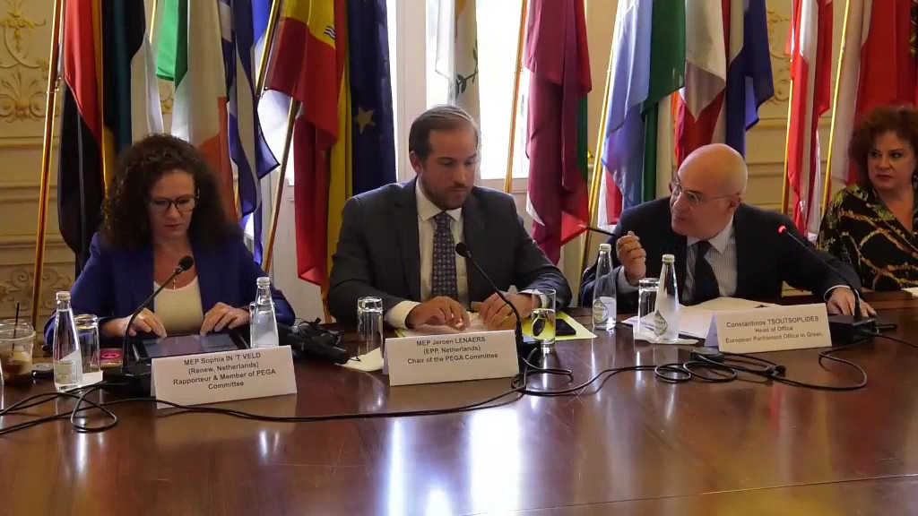 Now, maybe just as a brief introduction, our committee, the bigger committee is a committee of enquiry which was established in the European Parliament to look into the abuse of Pegasus and equivalent spyware in the European Union. So we don’t focus as much on individual member states, but we look at the European Union as a whole and through hearings, through studies and to country visits like we have now just concluded in Cyprus and Greece, we try to deepen our knowledge and improve our understanding of the situation, which will then feed into the report, which will be drafted by my colleague Sophia in ‚t Veld, who will also take the floor after me. So, this is this is what we do, our delegation to Cyprus and Greece.