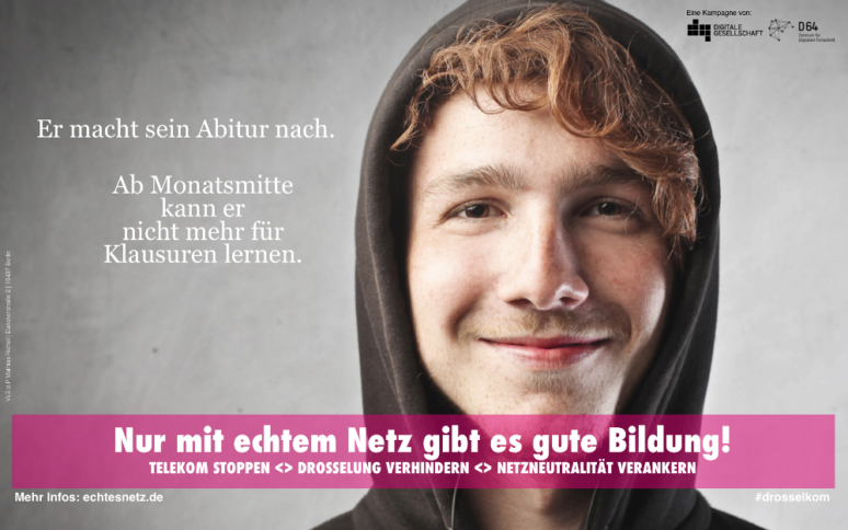 : Netzneutralität = Medienvielfalt, echte Innovationen und grenzenlose Liebe Der Digitale Gesellschaft e.V. und D64 – Zentrum für digitalen Fortschritt klären in einer gemeinsamen Motiv-Serie über die Bedrohung durch die Drosselkom-Pläne der Deutschen Telekom auf eine offenes Netz und Netzneutralität auf. Gefordert wird eine gesetzliche Festschreibung und Durchsetzung der Netzneutralität, um Medienvielfalt, echte Innovationen und grenzenlose Liebe zu sichern. Die von Mathias Richel gestalteten […]
