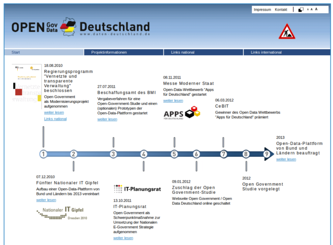 : OpenGov: BMI feiert Revival des Baustellenschildes Das Bundesinnenministerium feiert das Revivial des Baustellenschildes. Anders lässt sich die im Retrolook gestaltete Webseite daten-deutschland.de nicht erklären. Man beachte alleine das Baustellenschild rechts oben (leider nicht original Gif-animiert) und den Header. Lorenz Matzat kommentierte die Seite passend auf Twitter: Neue altertümliche Seite http://t.co/1bROqAta verrät viel über Haltung d. #Bundesregierung zu #OpenGov & #OpenData Wer […]