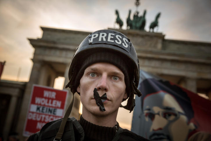 Das BND-Gesetz wird auch als Bedrohung für die Pressefreiheit angesehen. Darauf spielte ein Demonstrant vor dem Brandenburger Tor am 20. Oktober 2016 an. Foto: <a href="https://creativecommons.org/licenses/by-nc/2.0/">CC-BY-NC 2.0</a> <a href="https://www.flickr.com/photos/kattascha/29823334163/sizes/h/">Katharina Nocun</a> : Bundesrat winkt BND-Gesetz im Schnellverfahren durch Der Bundesrat hat das umstrittene BND-Gesetz, das die Befugnisse des Auslandsgeheimdienstes drastisch ausweitet und bislang illegale Praktiken legalisiert, im Eilverfahren gebilligt. Schon vor der Verabschiedung im Bundestag hatte der Bundesrat angekündigt, keine Einwände zu erheben. Schon im Bundestag legte die Bundesregierung beim BND-Gesetz ein hohes Tempo vor. Dem Bundesrat gab sie mit, dass er das […]
