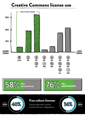 : Sharing is Caring – Bald 1 Mrd CC-Lizenzierte Werke im Netz Bei State of the Commons ist eine Infografik zur Verbreitung und Verwendung von Inhalten unter CC-Lizenzen erschienen. Die Daten zeigen, dass sich in den letzten vier Jahren die Zahl der Inhalte unter freien Lizenzen im Netz mehr als verdoppelt hat. Es werden auch verstärkt Inhalte geteilt, die zur kommerziellen Nutzung verwendet und angepasst werden können. […]