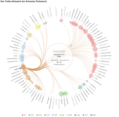 Screenshot via nzz.ch : Schweiz: Wie sind Abgeordnete auf Twitter vernetzt? Die Neue Züricher Zeitung hat analysiert, wie die 92 auf Twitter aktiven Parlamentarier interagieren. In einer interaktiven Graphik kann man sich anschauen, dass der am besten vernetzteste Parlamentarier Stefan Müller Altermatt 76 seiner Kollegen folgt und bemerkt, dass Parteimitglieder oft in der Blase ihrer eigenen Parteifreunde bleiben. Auch zeigt sich, dass von der Konservativen SVP […]