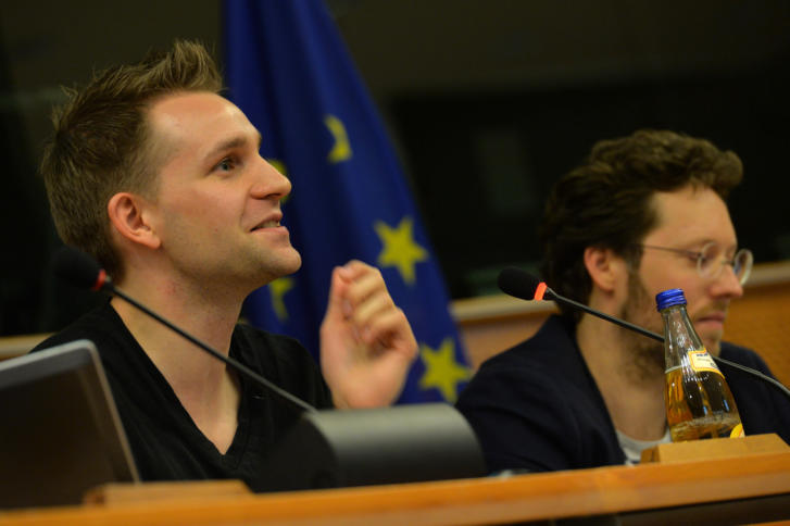 Max Schrems und Jan Philipp Albrecht bei einer Diskussion im Europäischem Parlament (c) [<a href="https://www.flickr.com/photos/janalbrecht/22472383232/">Jan Philipp Albrecht</a>] mit freundlicher Genehmigung. : Privacy Shield: Also wieder vor Gericht ziehen? Die EU-Kommission hat heute in einer offiziellen Pressekonferenz die finale Fassung des „Privacy Shield“ als Nachfolger für das Safe Harbor-Abkommen präsentiert. Jan Philipp Albrecht organisiert eine Art Gegenveranstaltung und lud Max Schrems dazu.