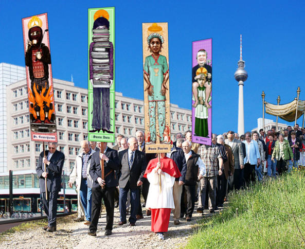 : Dienstag: Heiligenprozession für Datensicherheit Das Berliner Künstlerduo Various & Gould lädt am kommenden Dienstag Nachmittag zu einer „Heiligenprozession für Datensicherheit und den Erhalt irdischer Freiheit und alternativer Kultur!“ unter dem Motto #HolyHelpers – Gesegneter Protest!“ ein. Eine Zwischenstation der Prozession wird auch die Baustelle des Bundesnachrichtendienstes in Berlin-Mitte sein. Das Berliner Künstlerduo Various & Gould ruft auf zur ersten […]