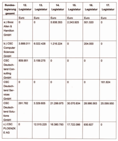 : CSC in alle großen IT-Vorhaben eingebunden: De-Mail, nPa, ePa, Staatstrojaner, Waffenregister, E‑Gerichtsakte, E‑Strafregister Am Wochenende hatte die Süddeutsche Zeitung im Enthüllungsprojekt „Geheimer Krieg“ weiter nachgelegt: Demnach sei die US-Beraterfirma CSC mit ihren elf Tochtergesellschaften nicht nur für heikle US-Geheimdienstmissionen unterwegs, sondern arbeite auch für deutsche Ministerien. Naheliegend sei, dass CSC die hierüber erlangten Informationen an US-Behörden weitergebe. Der Zeitung fiel auf, dass CSC-Firmen häufig „in der Nähe von […]