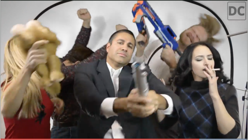 FCC-Chef Ajit Pai macht sich mit Pizza-Gate-Aluhutträgern lächerlich. : Video: FCC-Chef Pai tanzt mit PizzaGate-Verschwörungstheoretikerin Mit einem Video wollte der Telekom-Aufseher Ajit Pai demonstrieren, dass das Internet auch ohne Netzneutralität nutzbar bleibt. Doch die gewählten Beispiele gehen am Kern der Kritik vorbei. Stattdessen demonstriert der Rechtskonservative, dass er sich gerne mit Aluhutträgern umgibt.