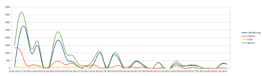 : Kurzfazit: Sieben Monate Flattr im Einsatz Nach sieben Monat Einsatz von Flattr als Micro-Donation-Service ist es mal Zeit für eine kleine Evaluation. Die kurze Version ist: Flattr hat sich als eine weitere Finanzierungssäule bei uns etabliert, reich werden kann man damit aber noch nicht. Über die sieben Monate sind insgesamt 4774,63 Euro an uns gespendet worden. Erstmal herzlichen Dank dafür. Die […]