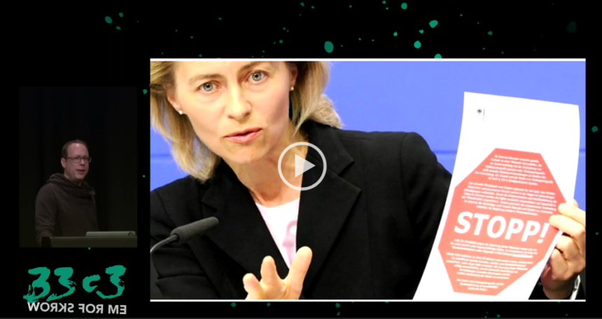 : #33c3: Was der Anti-Terror-Kampf von der Urheberrechtsdurchsetzung lernen kann Über den Zusammenhang von Zensursula, ACTA, Fake-News und Anti-Terror-Kampf hat Markus Beckedahl auf dem 33c3 in Hamburg gesprochen. Das Video von dem Talk gibt einen aktuellen Überblick, wie umfangreiche Zensurinfrastrukturen durch „freiwillige Kooperationen“ errichtet werden.