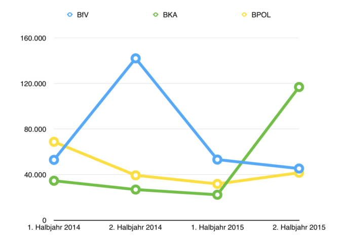 Der Versand von "Stillen SMS" durch das Bundeskriminalamt stieg im letzten Halbjahr deutlich an. : „Stille SMS“: Bundeskriminalamt verschickte fünf Mal so viele wie im ersten Halbjahr Der Versand von „Stillen SMS“ durch das Bundeskriminalamt (BKA) hat im zweiten Halbjahr 2015 rasant zugenommen: Waren es im ersten Halbjahr 2015 noch 22.357 heimliche verschickte Kurznachrichten, verfünffachte sich die Zahl in den vergangenen sechs Monaten auf 116.948. Das geht aus der Antwort des Bundesinnenministeriums auf eine Kleine Anfrage der Fraktion der Linken hervor. Sogenannte […]