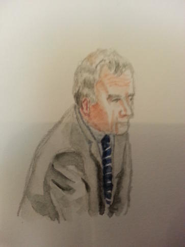 Zeuge Hans Josef Vorbeck bei seiner Anhörung. Zeichnung: <a href="http://veith-yaeger.de/?p=24">Stella Schiffczyk</a>. Causa Vorbeck: Wusste das Bundeskanzleramt schon 2011, dass es von US-Geheimdiensten überwacht wird? Die CIA hat 2011 Kommunikation zwischen Kanzleramt und Spiegel überwacht und diese an Geheimdienstkoordinator Heiß gegeben. Diese Meldung der Bild am Sonntag bestätigt jetzt der Spiegel und erstattet Anzeige wegen des Verdachts der geheimdienstlichen Agententätigkeit. Die „Causa Vorbeck“ führte gestern zum Eklat im Geheimdienst-Untersuchungsausschuss.