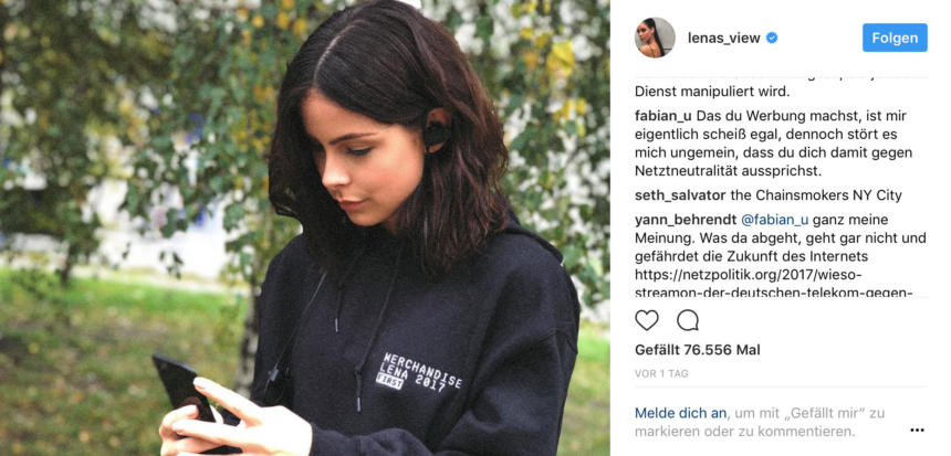 : Telekom schießt mit Influencermarketing gegen Netzneutralität Die Telekom setzt bei der Bewerbung ihrer neuen, die Netzneutralität verletzenden Tarife auf Influencermarketing. Unter dem Begriff versteht man persönliche Werbenachrichten von Promis und Netzpromis aller Bekanntheitsstufen, die mal mehr, mal weniger subtil auf Plattformen wie Instagram oder Youtube verbreitet werden. Für die neue Kampagne zu StreamOn hat die Telekom neben einigen Models auch die […]