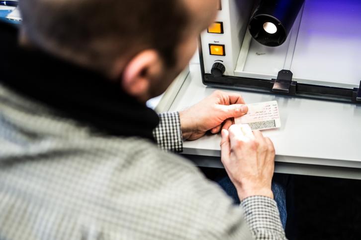 Ein BAMF-Mitarbeiter prüft einen Pass. : Digitalisierte Migrationskontrolle: Wenn Technik über Asyl entscheidet Sprachanalyse-Software, Fingerabdruckabgleich und Handydatenauswertung – das sind nur einige Maßnahmen, die das Bundesamt für Migration und Flüchtlinge in den letzten Monaten eingeführt hat. Asylverfahren werden digital, die Entscheidungen über menschliche Schicksale zunehmend Maschinen überlassen.
