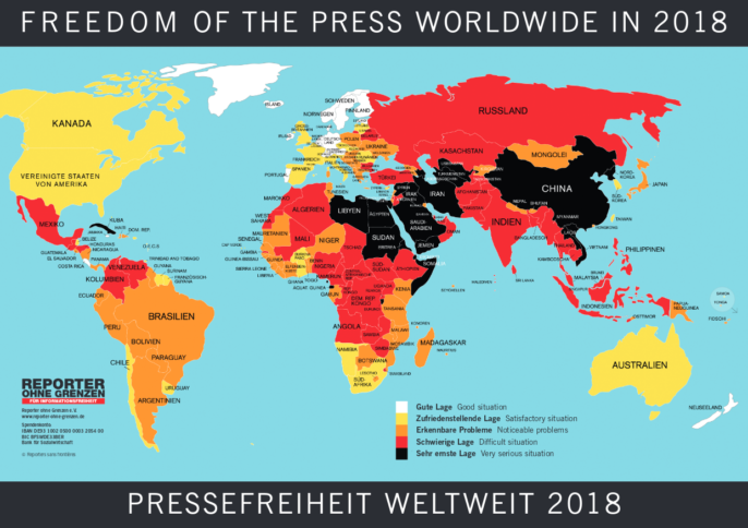 : Rangliste der Pressefreiheit: Deutliche Kritik an deutschen Gesetzen Reporter ohne Grenzen hat seine jährliche Rangliste der Pressefreiheit veröffentlicht. Deutsche Überwachungsgesetze, die den Informantenschutz gefährden, kritisiert der Journalistenverein deutlich. Insgesamt fällt Europa bei der Pressefreiheit am weitesten zurück. Im weltweiten Vergleich leben jedoch Berichterstatter außerhalb Europas gefährlicher.