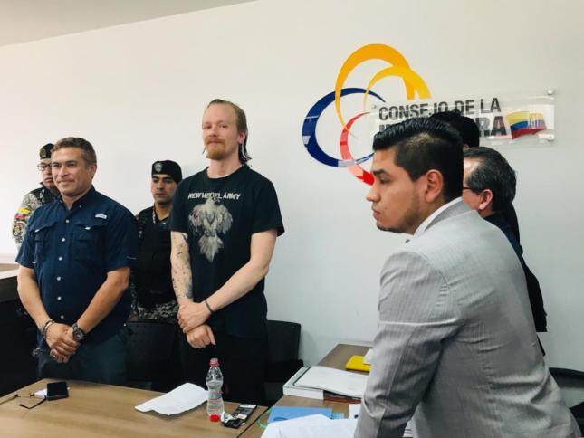 Ola Bini mit seinen Anwälten bei der Verkündung der Gerichtsentscheidung. : Ecuador: Netzaktivist Ola Bini kommt frei Der Netzaktivist Ola Bini darf das Gefängnis verlassen. Ein Gericht hat die Entlassung angeordnet. Ermittlungen laufen aber weiter. Ecuador hatte den schwedischen Aktivisten verhaftet – nur einen Tag nach seinem Freund Julian Assange.