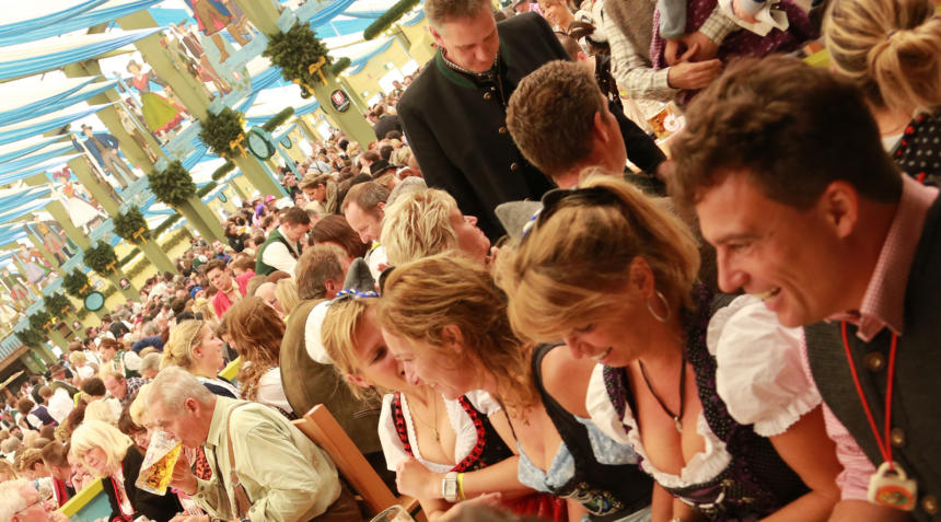Gäste in einem Festzelt auf dem Oktoberfest. Foto: <a href="https://creativecommons.org/licenses/by-nc/2.0/">CC-BY-NC 2.0</a> <a href="https://www.flickr.com/photos/17548547@N00/10133596785/sizes/h/">xsnowdog</a> : Das Oktoberfest rüstet auf: Überwacht is! Nach dem Amoklauf von München wird jetzt das Oktoberfest mit Sicherheitstechnologie aufgerüstet. Nicht nur Zäune und ein Rucksackverbot erwarten die Gäste, sondern auch eine Videoüberwachung in den Festzelten.