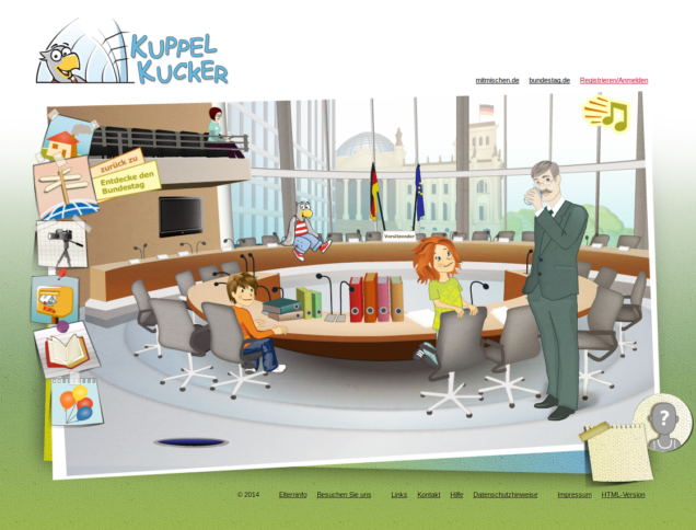 : Kuppelkucker.de – das Kinderportal des Bundestages Der Bundestag bietet mit Kuppelkucker.de ein Angebot für Kinder zwischen 5–11 Jahren, um die parlamentarische Arbeit kennen zu lernen. Laut Heute im Bundestag gab es einen Relaunch der Plattform. Die Flashversion ist leider etwas unbenutzbar, dafür gibt es auch eine HTML-Version. Auf den bunten Seiten von kuppelkucker.de können sich die jüngsten Internetnutzer außerdem durch das […]