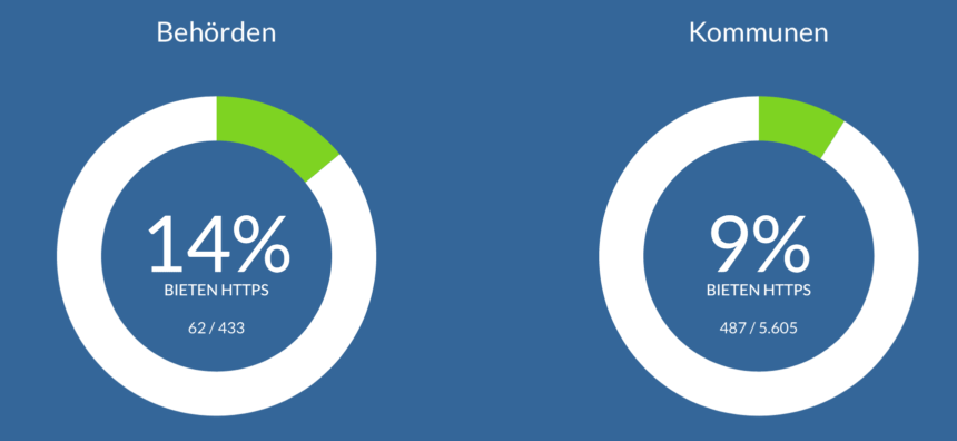 : Nur jede zehnte Kommune nutzt auf ihrer Webseite eine sichere Verbindung Nur 14 Prozent behördlicher und nur neun Prozent aller kommunalen Webseiten bieten eine sichere und verschlüsselte Verbindung an. Dies hat das Projekt https.jetzt automatisiert anhand des german-gov-domains Datensatzes ermittelt. Die Daten lassen sich filtern und durchsuchen. Auf der Erklärungsseite von https.jetzt werden potenzielle behördliche Domaininhaber mit Informationen zu HTTPS und Zertifikaten versorgt. Dabei verweist das […]