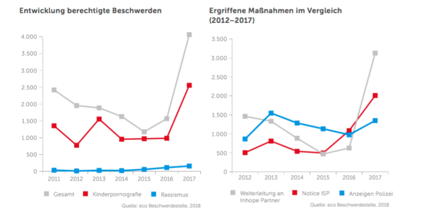 Die Internetwirtschaft verzeichnet einen Anstieg von Online-Beschwerden. : Internetverband meldet starken Anstieg von Rassismus im Netz Der Verband der Internetwirtschaft, eco, meldet einen Zuwachs von Beschwerden, die über sein Online-Formular im letzten Jahr eingereicht wurden. Insgesamt habe man 277.256 Hinweise erhalten, was einem Anstieg von 11,2 Prozent im Vergleich zum Vorjahr entspricht. Von all den Hinweisen seien 4.063 Fälle berechtigt gewesen, geht aus dem heute veröffentlichten Jahresbericht (PDF) hervor. Aus der […]