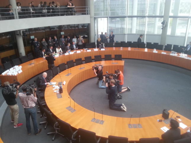 Europasaal vor der Sitzung. : Live-Blog aus dem Geheimdienst-Untersuchungsausschuss: „Ich weiß auch nicht, warum ich hier Zeuge bin.“ Heute tagt wieder der Geheimdienst-Untersuchungsausschuss im Bundestag. Geladen sind diesmal H.K. (zum zweiten Mal) und Michael Koch. Wir sitzen wie immer drin und bloggen live. H.K. war bereits vor zwei Wochen im Ausschuss, damals konnte er krankheitsbedingt jedoch nur zwei Stunden lang aussagen. H.K. hat 2013 die NSA-Selektoren in Bad Aibling überprüft und war 2010 […]