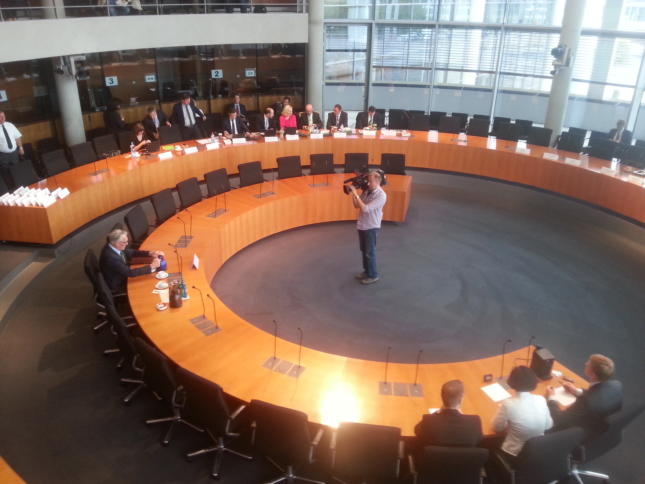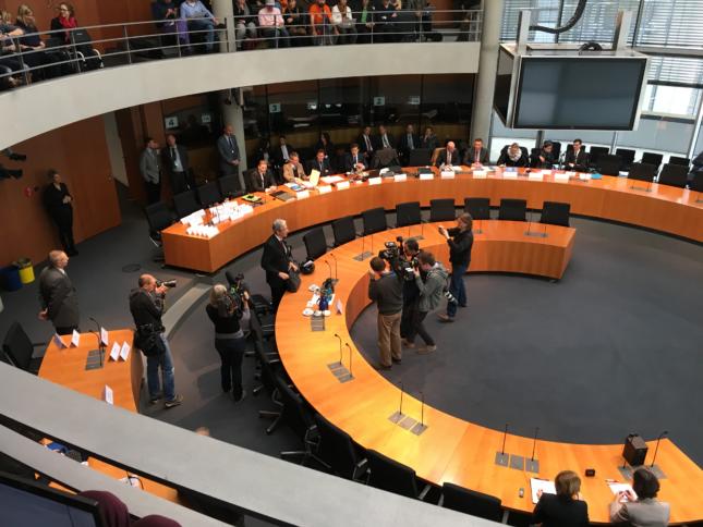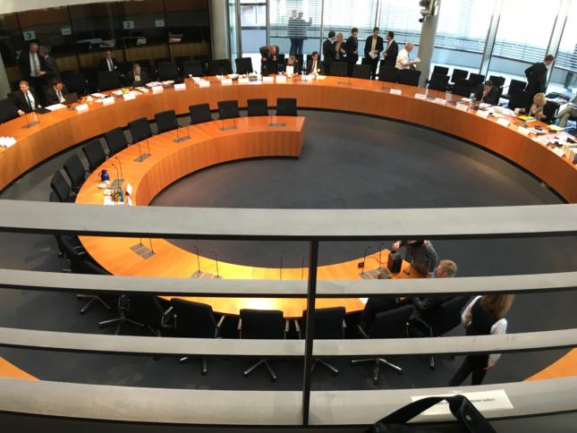 Europasaal vor der Sitzung : Live-Blog aus dem Geheimdienst-Untersuchungsausschuss: „Selektorenherausgabe wäre Urheberrechtsverletzung“ Heute tagt wieder der Geheimdienst-Untersuchungsausschuss im Bundestag. Geladen sind diesmal Dr. Kurt Graulich, Dr. Werner Ader und Albert Karl. Wir sitzen wie immer drin und bloggen live. Kurt Graulich ist der umstrittene Sonderbeauftragte für die Selektorenprüfung, er ist im Gegensatz zu den weiteren angehörten Personen des Tages als Sachverständiger und nicht als Zeuge geladen. Da […]