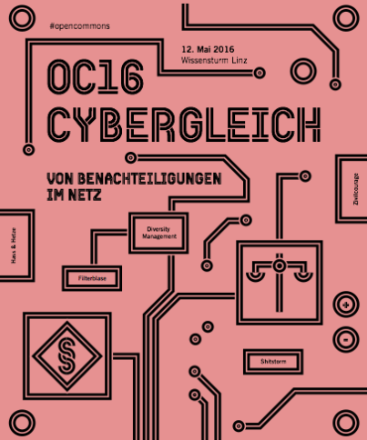 : Open Commons Kongress 2016 zum Thema „Cybergleich“ Der jährliche Open Commons Kongress in Linz widmet sich am 12. Mai 2016 dem Thema „Cybergleich: Von Benachteiligungen im Netz“. Aus der Ankündigung: Zwar haben wir durch das Netz mehr Mitsprache bekommen und Prozesse können demokratischer gestaltet werden, doch mittlerweile müssen wir erkennen, dass auch das Internet Privilegien mit sich bringt, die nicht allen gleichermaßen […]