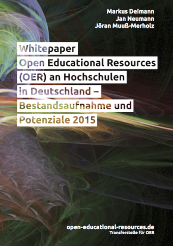 : White Paper zu Open Education an deutschen Hochschulen Markus Deimann, Jan Neumann und Jöran Muuß-Merholz haben mit Unterstützung des Stifterverbands der deutschen Wissenschaft in einem Whitepaper (PDF) eine Bestandsaufnahme von offenen Lehr- Lernunterlagen (Open Educational Ressources, OER) an deutschen Hochschulen vorgelegt und Potentiele für die weitere Entwicklung identifiziert. Das Whitepaper ist bereits das dritte in einer Reihe zu unterschiedlichen Anwendungsfeldern von OER, den […]
