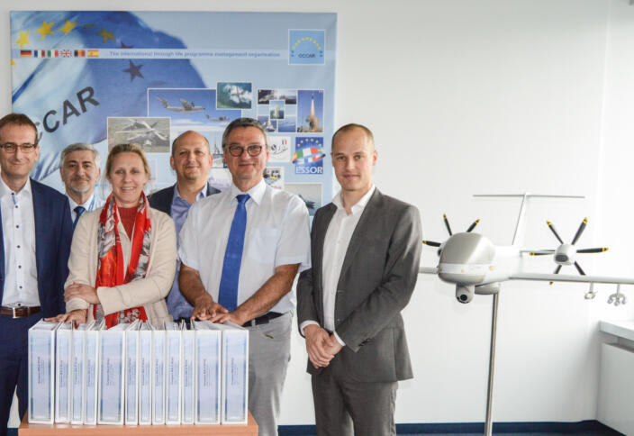 Die europäische Rüstungsorganisation OCCAR prüft das Angebot von Airbus für die Eurodrohne und zeigt erstmals ein Modell mit Bomben und Raketen. EU-Rüstungsprojekt: Eurodrohne verspätet sich um zwei Jahre Der Termin für die anvisierte Serienproduktion einer europäischen Langstreckendrohne ist nicht haltbar. Für die mindestens zweijährige Verzögerung soll das deutsche Verteidigungsministerium verantwortlich sein. Die Eurodrohne ist mittlerweile in die „Ständige Strukturierte Zusammenarbeit“ übernommen worden. Weitere Regierungen könnten dem Projekt beitreten.