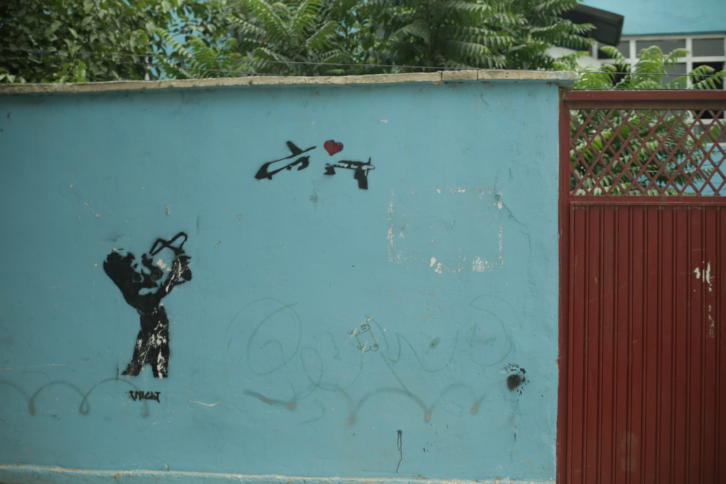 Ausschnitt aus dem Film „National Bird“: Graffito in Kabul. : Drohnenfilm „National Bird“: Filmstart und Freikartenverlosung Diesen Donnerstag startet deutschlandweit der Dokumentarfilm „National Bird – Wohin geht die Reise, Amerika?“ Der Film berichtet von Opfern und Tätern der Konflikte, in denen bewaffnete Drohnen eingesetzt werden. Wir verlosen Freikarten.