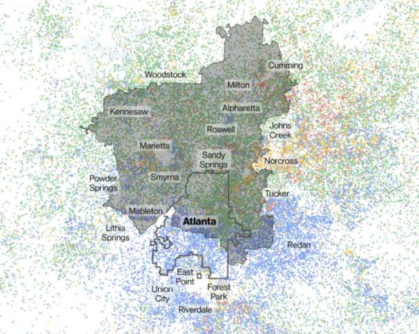 Die blauen Punkte sind schwarze Wohnviertel in Atlanta, die abgedunkelte Fläche ist dsd Same-Day-Delivery-Gebiet von Amazon. Screenshot: Bloomberg.com : Datenjournalismus: Amazon beliefert schwarze Wohnviertel in den USA schlechter In einer aufwendigen Datenrecherche und Visualisierung haben David Ingold und Spencer Soper bei Bloomberg nachgewiesen, dass Amazon in mehrheitlich schwarzen Wohnvierteln in den USA weniger häufig die Option der „Am-Selben-Tag-Lieferung“ anbietet. Dazu gaben die Journalisten alle Postleitzahlen in die Verfügbarkeitsprüfung ein und verglichen dann die Ergebnisse mit Bevölkerungsdaten des U.S. Census Bureau: In six major […]