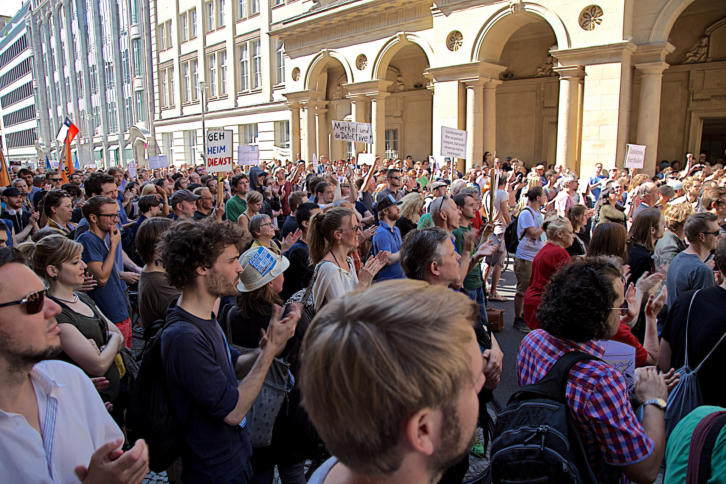 Demonstration gegen die Landesverrat-Ermittlungen vor dem Justizministerium in Berlin. Foto: <a href="https://creativecommons.org/licenses/by/2.0/">CC-BY 2.0</a> <a href="https://www.flickr.com/photos/mw238/19610988723/sizes/k/"> mw238</a> : Bisher nicht-öffentliches Protokoll zu #Landesverrat: Justizminister Maas vs. Ex-Generalbundesanwalt Range Ein bisher nicht-öffentliches Protokoll einer Sondersitzung des Rechtsausschusses im Deutschen Bundestag zur #Landesverrats-Affäre gibt interessante Einblicke, wer was wann von Seiten der Bundesregierung gewusst hatte.