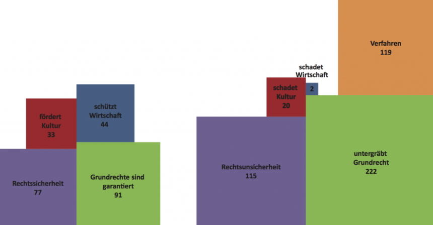 Die Argumente der ACTA-Befürworter (linke Seite) und der ACTA-Gegner (rechts) kamen in den 248 untersuchten Artikeln unterschiedlich häufig vor. Die von den Gegnern artikulierten Sorgen um Bürger-/Grundrechte und Rechtssicherheit sowie die Kritik am Verfahren bekamen mehr Raum. : „Framing“: Wie sich die ACTA-Gegner durchsetzten. Ein Gastbeitrag von Katrin Tonndorf, wissenschaftliche Mitarbeiterin am Lehrstuhl für computervermittelte Kommunikationen der Universität Passau. ACTA. Diese vier Buchstaben machten das Urheberrecht 2012 zum Tagesschau-Thema. Auf einmal wurden große Debatten zu einem netzpolitischen Problem geführt, über das bisher nur die Unterhaltungsindustrie mit ein paar Netzaktivisten stritt. Beide Interessengruppen versuchten, mit ihrer Sichtweise die Öffentlichkeit zu […]