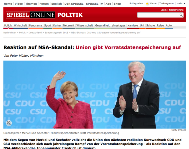 : Spiegel Online Ente: Union gibt Vorratsdatenspeicherung nicht auf, benennt sie nur um