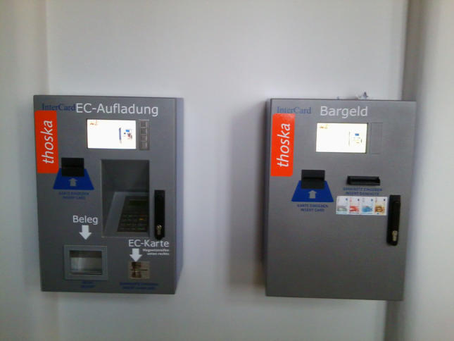 Automaten, um Thoska-Karten mit Geld aufzuladen. Bild: <a href="https://fhznordhausen.wordpress.com/2013/12/16/bargeldlos-in-der-mensa-bezahlen-die-thoska-karte/">FHZ Nordhausen</a>. Interview mit anonymen Hackern: Mit geklonten Hochschulkarten in Namen anderer bezahlen und Türen öffnen Die an Thüringer Universitäten eingesetzte Hochschulkarte „thoska“ lässt sich einfach auslesen und klonen, sogar aus der Distanz. Anonyme Hacker haben die seit Jahren bekannte Schwachstelle jetzt praktisch ausgenutzt und ihre Erkenntnisse veröffentlicht. Sicherheits-Forscher fordern, die veralteten Karten zeitnah durch moderne Versionen zu ersetzen.