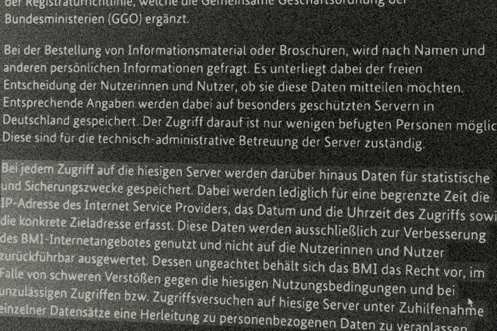 Aus der Datenschutzerklärung des Innenministeriums. : BGH-Verhandlung: Darf die Bundesregierung IP-Adressen von Webseitenbesuchern speichern? Die Bundesregierung will weiterhin IP-Adressen von Besuchern ihrer Webseiten speichern. Ob das rechtmäßig ist, entscheidet jetzt der Bundesgerichtshof. Für den Datenschutz in Deutschland kann der Fall weitreichende Konsequenzen haben.