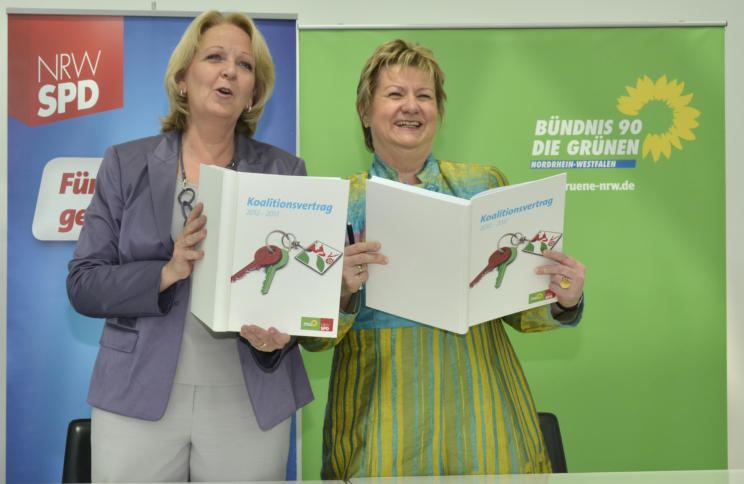 SPD und Grüne 2012 bei der Unterzeichnung des Koalitionsvertrags für Nordrhein-Westfalen : Nordrhein-Westfalen: Transparenzgesetz bleibt geheim Obwohl sie es im Koalitionsvertrag vereinbart hatte, hat die scheidende rot-grüne Regierung in Nordrhein-Westfalen kein Transparenzgesetz verabschiedet. Der Gesetzentwurf dazu soll geheim bleiben – nach Willen des Innenministeriums für immer.