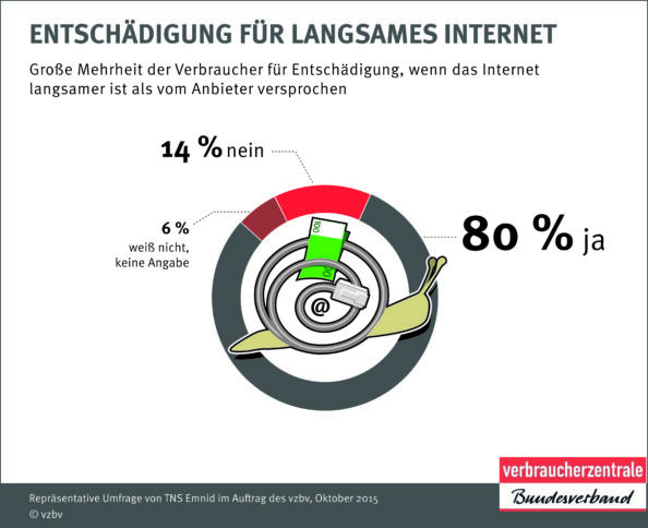 Infografik: Verbraucherzentrale Bundesverband (vzbv) : Verbraucherschützer fordern „schnelles Internet“ für alle Wenn der Internetanschluss langsamer ist als vom Anbieter versprochen, sollten betroffene Kunden entschädigt werden, fanden 80 Prozent der Verbraucher. Um ein Prozent höher lag die Zustimmungsrate auf die Frage, ob deutsche Bürger ein Recht auf einen schnellen Internetanschluss haben sollten. Das ergab eine repräsentative Umfrage des Meinungsforschungsinstituts TNS Emnid im Auftrag des Verbraucherzentrale Bundesverbands (vzbv). […]